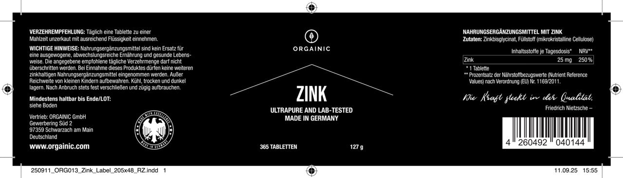 In Deutschland hergestelltes und getestetes Zinkbisglycinat. Das Spurenelement Zink ist Teil vieler Enzyme und dadurch an unzähligen Prozessen im menschlichen Körper beteiligt. Zum Beispiel bei der Verwertung von Makronährstoffen. Außerdem ist es wichtig für das Wachstum und das Immunsystem. Zink ist auch am antioxidativen Schutzsystem gegen freie Radikale beteiligt. Der Körper hat einen begrenzten Zinkspeicher und muss dadurch kontinuierlich mit Zink versorgt werden. Wir verwenden Zinkbisglycinat, eine Form bei der Zink mit der Aminosäure Glycin verknüpft ist. Diese schützt das Zink vor der Magensäure und sichert so die effektive Aufnahme durch den Körper.